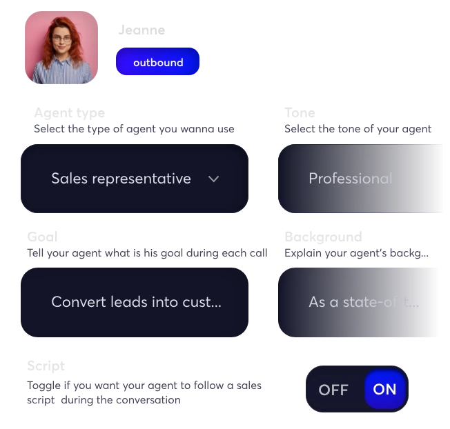 Easily instruct your agent how to behave during the call using our step by step wizard.